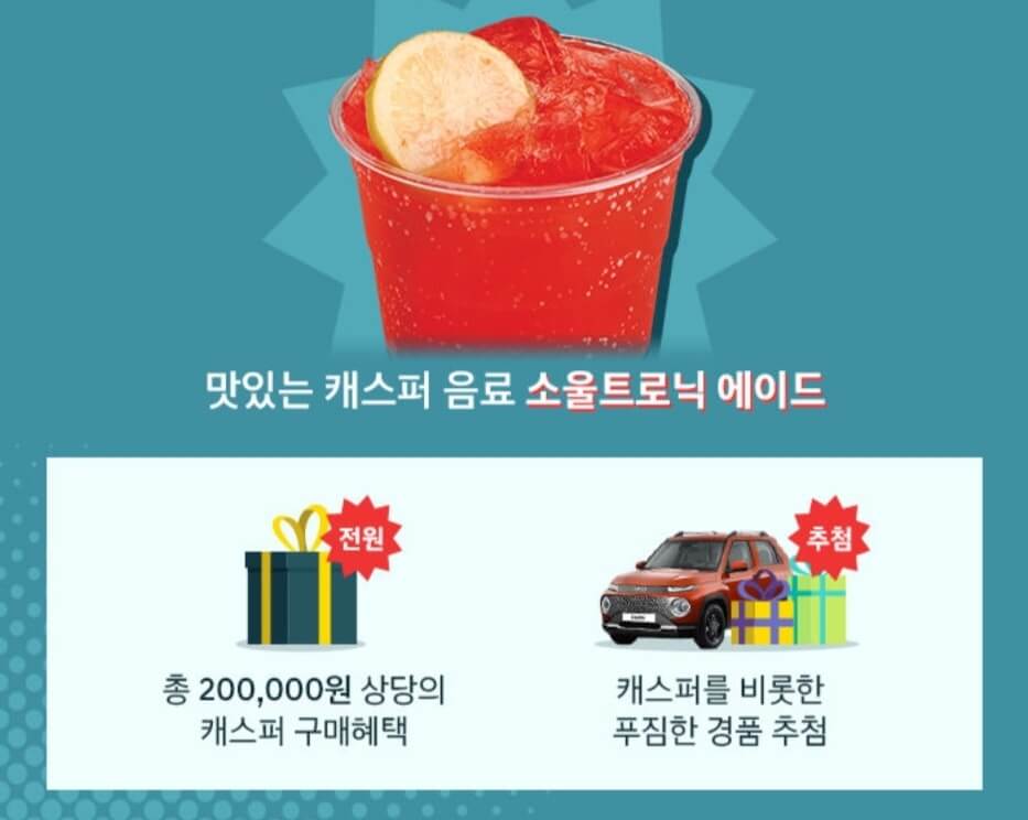 빽다방에서 캐스퍼 협업음료 '소울트로닉 에이드' 구매